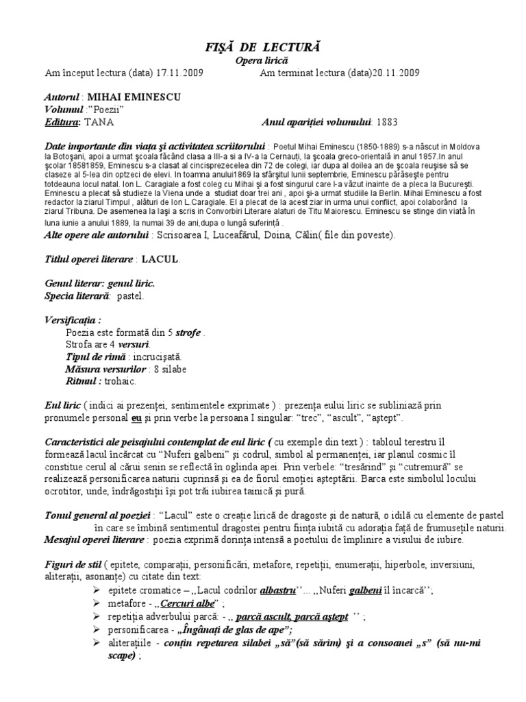 Fise De Lectura Literatura Universala Aplicatii Practice