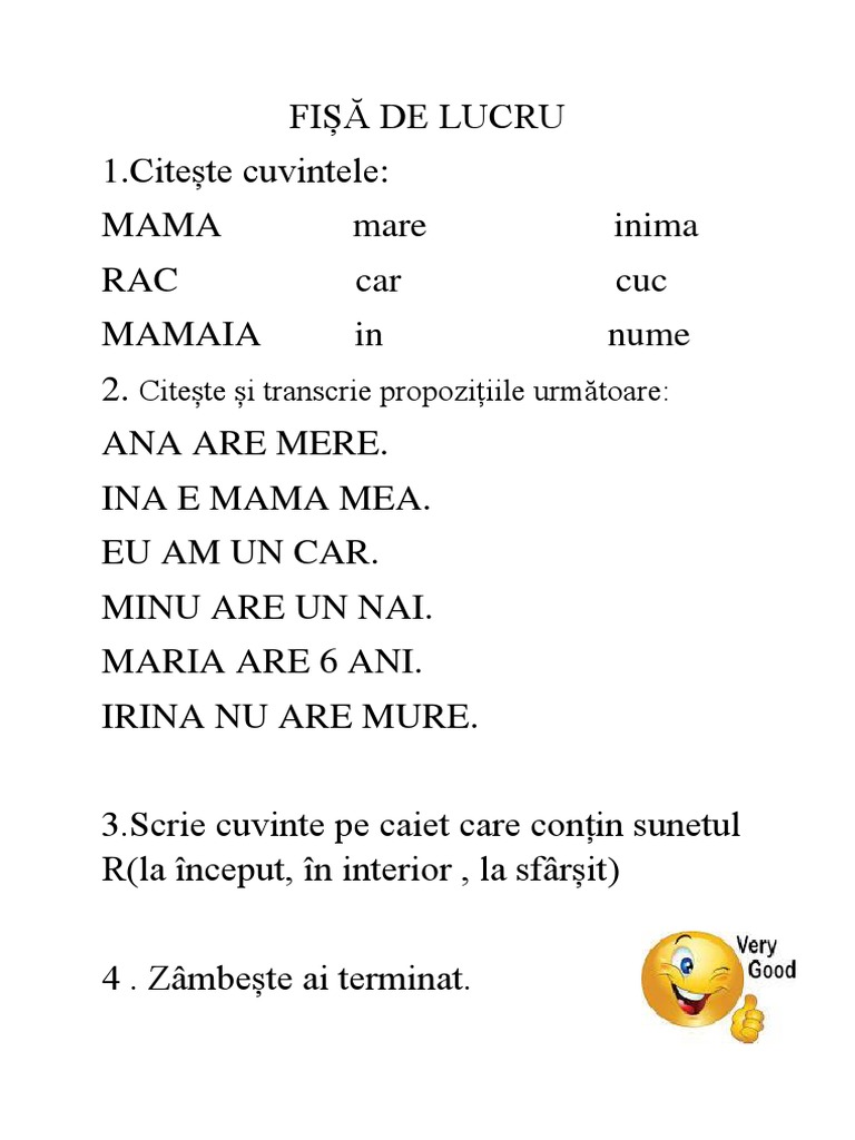 Fisa De Lucru Pentru Clasa Pregatitoare