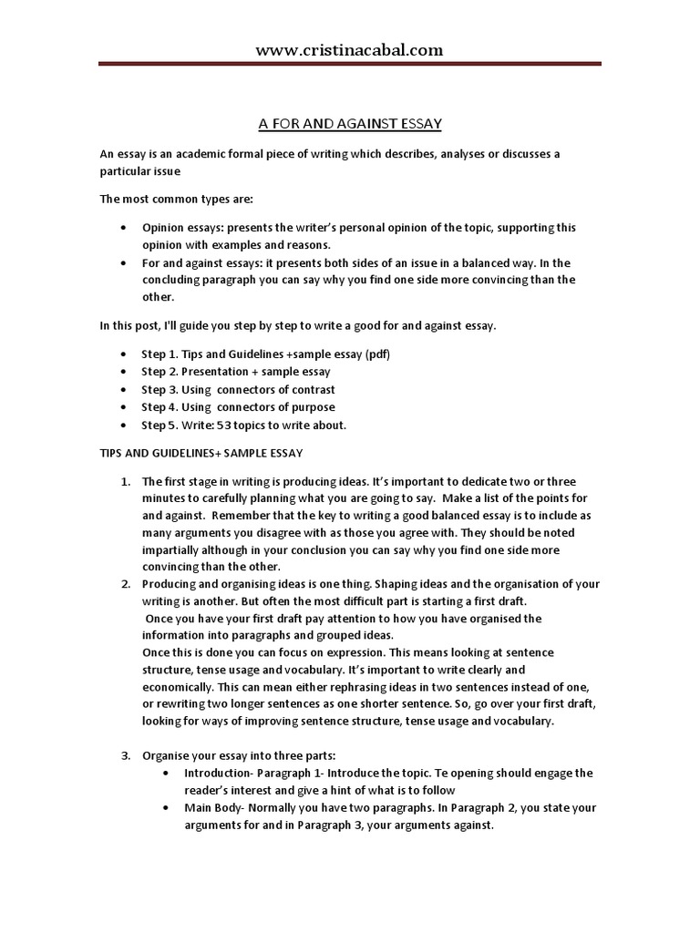 For And Against Essay Sample